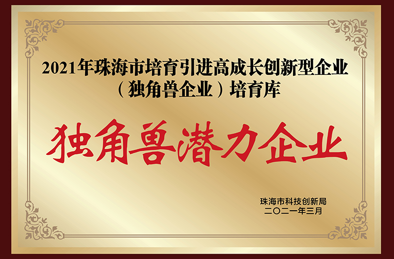 廣東省專精特新中小企業、廣東省機器人骨干企業、珠海市獨角獸潛力企業